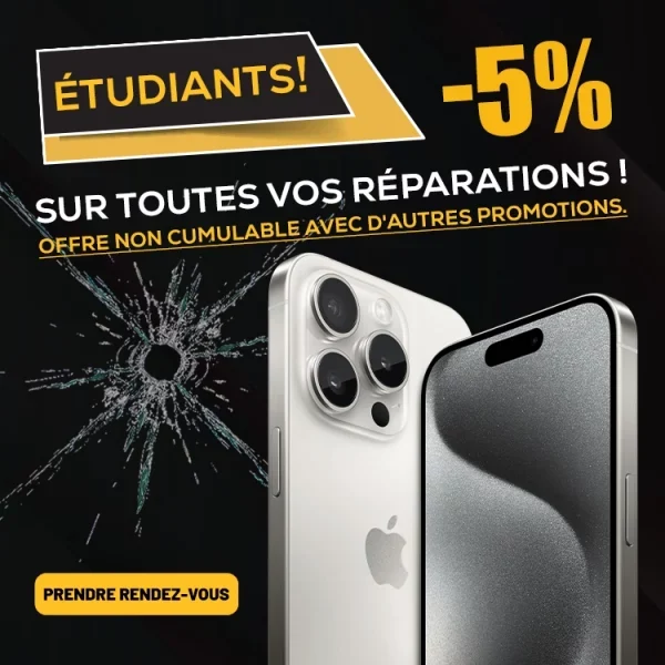 Chez Assistance Geek Mobile, nous sommes ravis de vous présenter nos promotions actuelles ! Profitez dès maintenant de remises exceptionnelles sur la réparation de batteries, connecteurs de charge et châssis pour tous vos appareils mobiles. Nos experts sont à votre service et vous offrent des réparations de qualité professionnelle à des tarifs qui respectent votre budget. Ne manquez pas cette opportunité d'améliorer la performance de vos appareils grâce à nos solutions accessibles, situées au cœur de Saint-Michel-Chef-Chef.